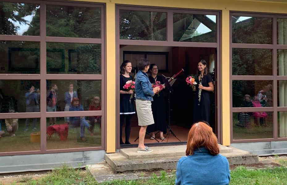 Das kleine Konzert ist Teil des Musikprojekts, das bereits Mitte Mai im Kunsthaus Stove mit intensiven Proben und Filmaufnahmen des Hamburger Holzbläsertrios trio sal begonnen hat. Die vor und zu Pfingsten geplanten Konzerte an verschiedenen Stationen des Skulpturenwegs mussten leider coronabedingt ausfallen.