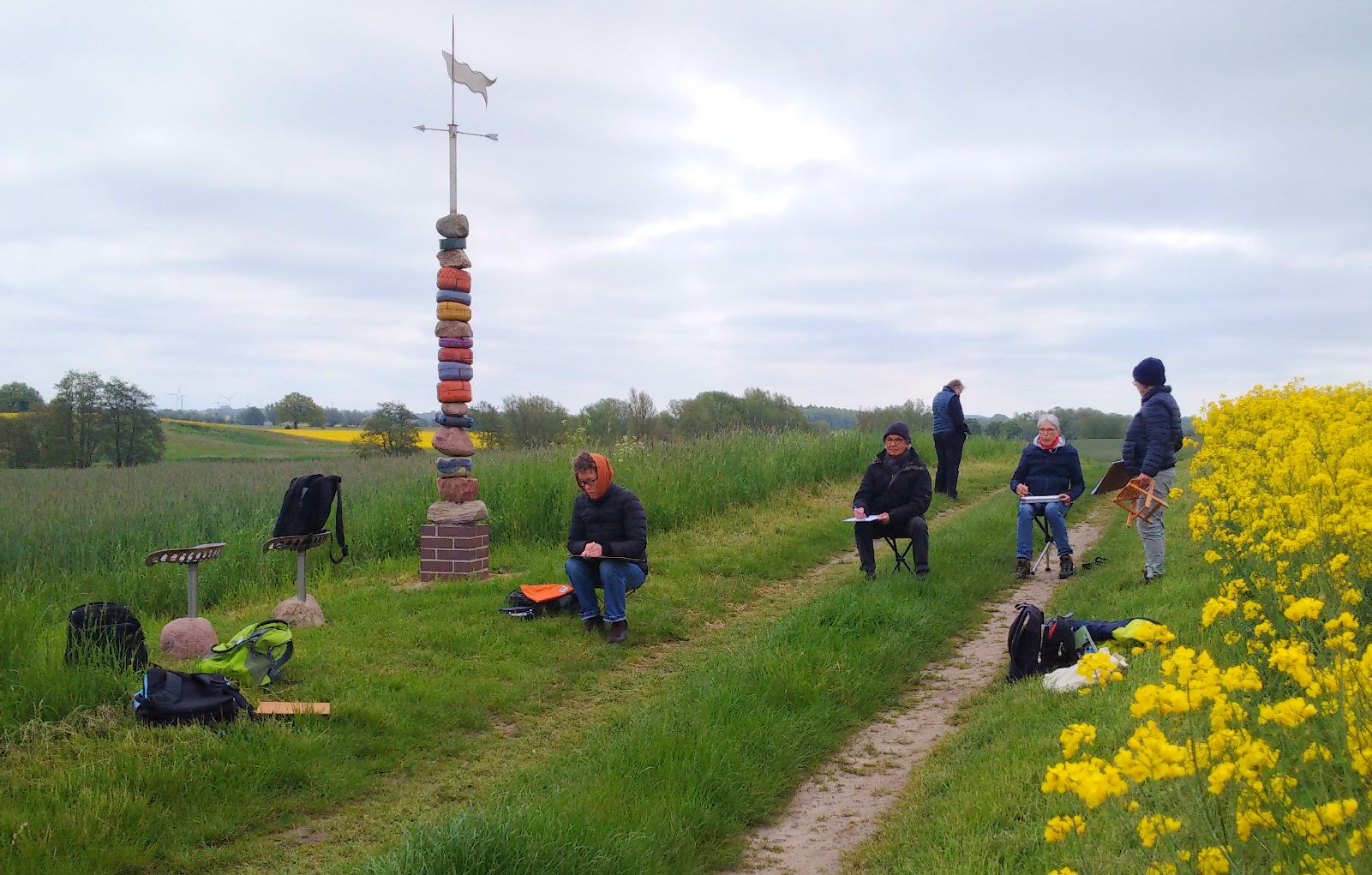 „Die Ostseelandschaft am Salzhaff macht Lust auf Bewegung und lässt gleichzeitig Sehnsucht nach einer (bildnerischen) Reaktion auf Weite und Wind entstehen. Begegnungen mit Menschen und Tieren in dieser Landschaft wecken den Wunsch, sie im Raum und in ihrer Bewegung intensiver wahrzunehmen und zeichnend oder malend auf diesen Impuls zu reagieren.