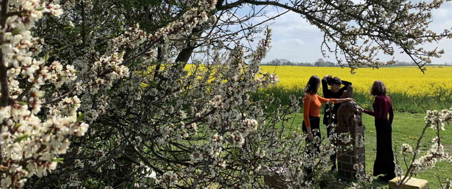 „Inzwischen habe ich sie schon zu allen Jahreszeiten getroffen – das Mädchen mit der Flöte, die Frau mit Blume, den Mann mit Segelschiff, den Jungen mit Vogel, die spielenden Hunde und mich immer gut mit ihnen unterhalten. Es braucht keine Verabredung, keine Terminabsprache – trotzdem sind sie zuverlässig da, wenn ich mit ihnen zusammen sein möchte. Wo? Auf dem Skulpturenweg am Salzhaff! Vielleicht haben Sie schon eine der liebenswerten Figuren von Dörte Michaelis besonders ins Herz geschlossen. Oder noch gar keine Gelegenheit gehabt, sie zu finden – unterwegs in den umliegenden Dörfern. So oder so möchte ich Sie einladen, sie mit mir gemeinsam zu besuchen und sich von ihnen und der Landschaft inspirieren zu lassen. Wir wollen erinnern, fantasieren, erzählen, Geschichten schreiben oder Gedichte. Wir treffen uns bei schönem Wetter am Skulpturenweg und nehmen uns Zeit – für eine Skulptur, die Landschaft und füreinander. Sitzgelegenheiten an den Skulpturen laden ein, direkt Vorort mit dem Schreiben zu beginnen. Als Schriftstellerin bin ich für Sie und Ihre Geschichte da! Auch, wenn Sie nach unserem Treffen zu Hause weiter schreiben möchten. Ihre Geschichten können in einer Broschüre veröffentlicht werden und im Herbst diesen Jahres erscheinen. Verabreden möchte ich mich mit Ihnen dazu individuell – einzeln oder in kleinen Gruppen. Wählen Sie gern einen Termin vom 26.07. bis 6.08. und kontaktieren Sie mich unter c.blazejewski@wilder-norden-film.de und unter 0176- 57673681.“